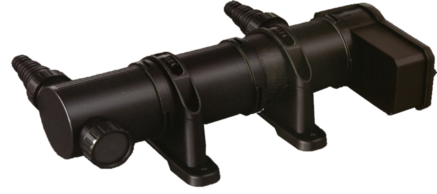 Selve UV-C filteret monteres på land og kobles på pumpeslangen.