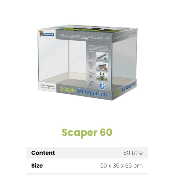 Superfish Scaper akvarier er laget av krystallklart glass, som sikrer et krystallklart undervannsbilde. Modellene er spesielt utviklet for Aquascaping, så dimensjonene er perfekte for å skape et vakkert beplantet undervannslandskap.