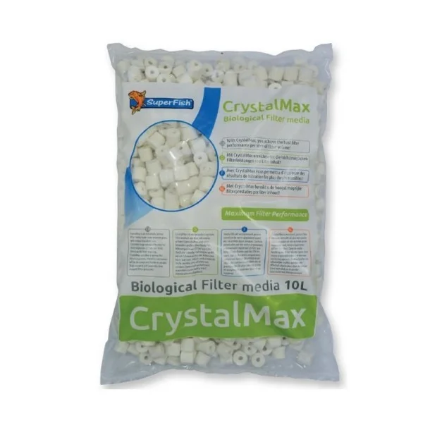 Extremely porous filter media made from sintered glass, acts like a sponge for micro-organisms. Harmful substances will be decomposed thanks to aerobic (high oxygen) and anaerobic (low oxygen) filter processes. With CrystalMax, you achieve the best performance per litre of filter volume!