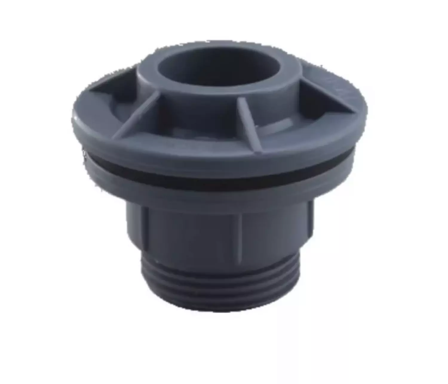Tankgjennomføring med kraftig gummipakning. 63mm innvendig på ene siden for limrør/limslange og 2” rørgjenger innvendig på andre siden.